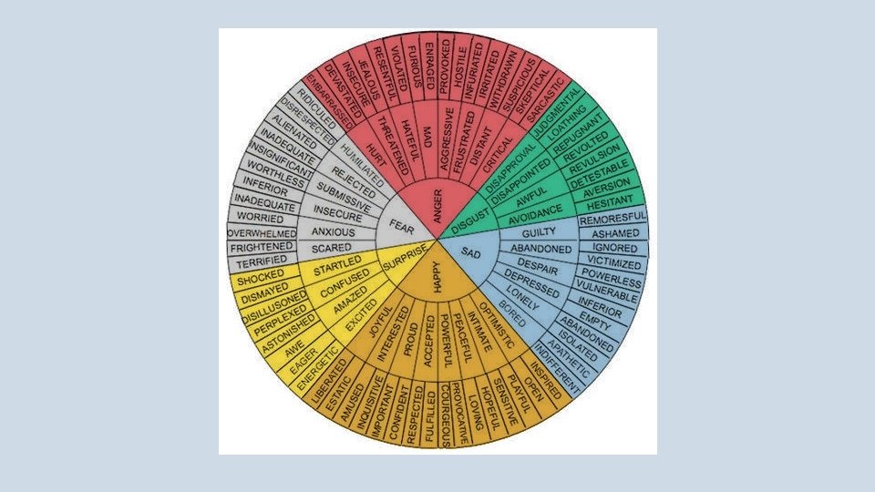 BEYOND SAD, MAD AND BAD: ARTICULATING OUR RESPONSE TO TEXTS POSITIVE CONNOTATIONS Empowered Uplifted Inspired Enlightened Engaged Hopeful Optimistic Liberated Heart-warmed Impressed Endeared (feel fondly about something or someone) Awed Heartened Overjoyed Enamoured Reassured NEGATIVE CONNOTATIONS Dismayed Harrowed Disheartened Appalled Concerned Alarmed Unsettled Exasperrated Infuriated Disgusted Violated Angered Outraged Depressed Demoralised Dumbfounded Incredulous Distressed Uncomfortable Guilty Exploited Provoked Sombre NEUTRAL Reflection Conflicted Enlightened Ambivalent (feeling conflicted) Destabilised Contemplative Meditative Aware Reflective Informed Educated Convinced Sobered