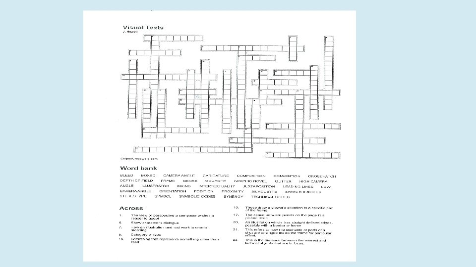 Definitions and critical vocabulary Cultural identity Cultural myths Representative Egalitarian Marginalisation Multicultural Eurocentric Contested Multifaceted Stereotypes Diverse Multifaceted Nebulous Evolving Homogenous Monocultural Quintessential Values Attitudes Traditions Patriarchal Divisive Cultural cringe Irreverent Representation Larrikinism Perspectives Anti-authority Dynamic Romanticised Complex Destabilise Heterogeneous Interrogate Iconography