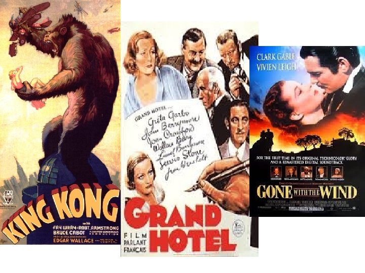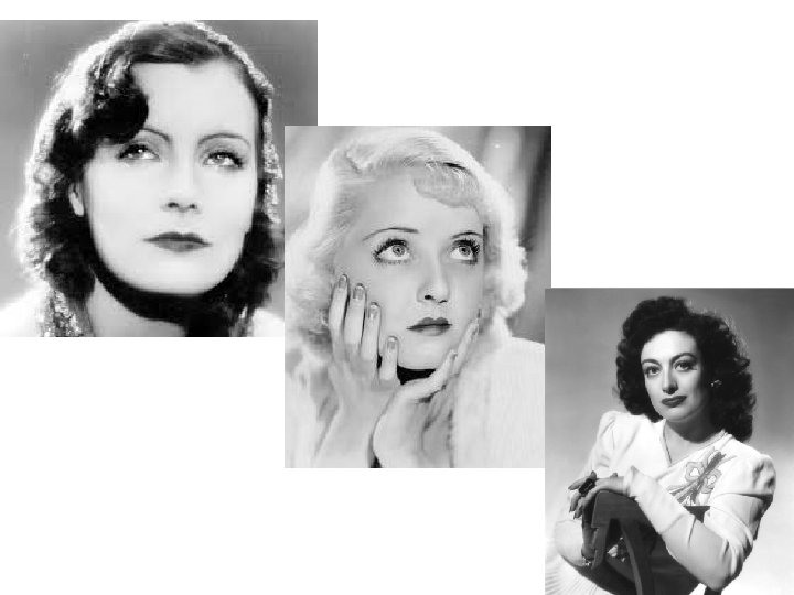 On the other hand… • This was the beginning of the Golden Age of Hollywood. • Glamorous and beautiful women played the victim at the mercy of man or monster. • Some of the most popular films were ‘Grand Hotel’, ‘Gone with the Wind’, ‘King Kong’, ‘Dracula’ and ‘Tarzan the Ape Man’. • Famous actresses included Greta Garbo, Bette Davies and Joan Crawford.