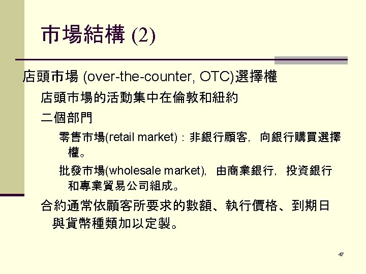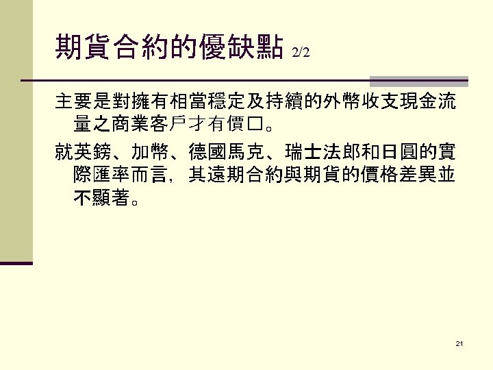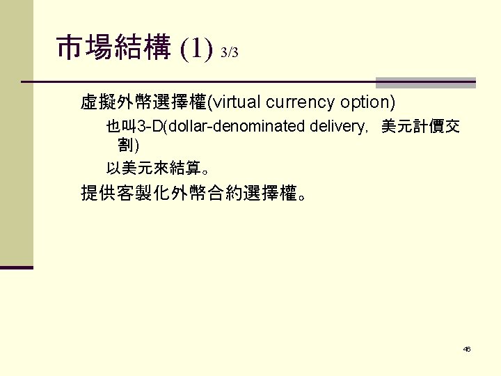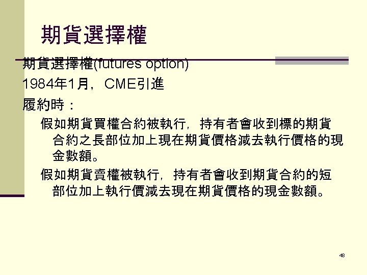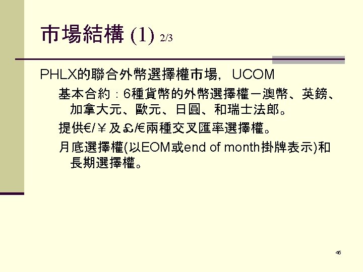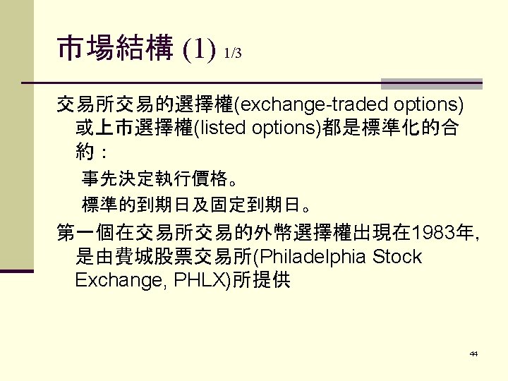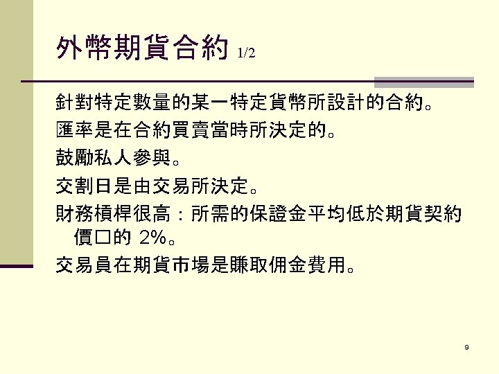 PART I. FUTURES CONTRACTS外 幣期貨合約 I. CURRENCY FUTURES外幣期貨合約 A. Background 1. Long history 2. Extremely volatile due to information driven nature 3. Price Discovery Role 2
