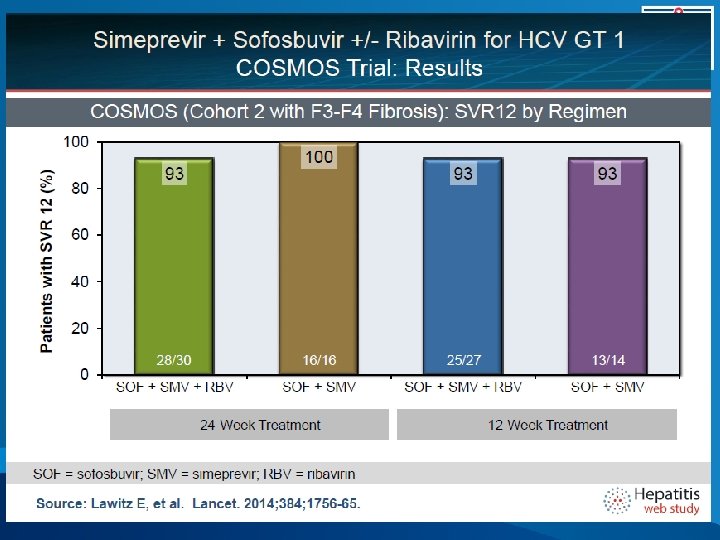 COSMOS, SVR 12 (ITT) Results 100% 0 7 7 7 2 80% 60% 40% Relapse 100 93 93 93 95 Non VF SVR 12 20% 0% 28/30 16/16 25/27 SMV/SOF/RBV 24 weeks Lawitz, etal. 49 th EASL, April 9 -13, 2014. 13/14 SMV/SOF 12 weeks 82/87 SMV/SOF +/- RBV Overall 25