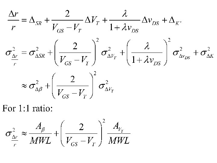 If m. Cox and VT matched: If v. DS matched: Current gain or mirror gain is controlled by geometric ratio, which can be made quite accurate
