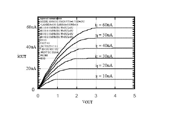 Specifications for current mirrors • How constant is io – Large ro • How large is vo range for which io is const – Small vmin • How accurate is mirror ratio – In the presence of process variations – Voltage supply variations – Environmental variations – Usage variations • Calculate, design strategy