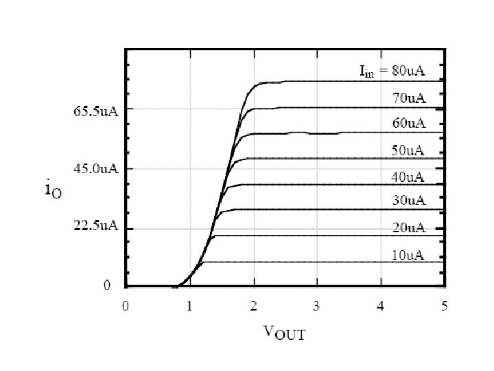 Wide input and output voltage swings Ib Iin Von 1 1 + VT+Von – Ib VT+2 Von 1/4 VT+Von Io = Iin+Ib 1 >2 Von 1