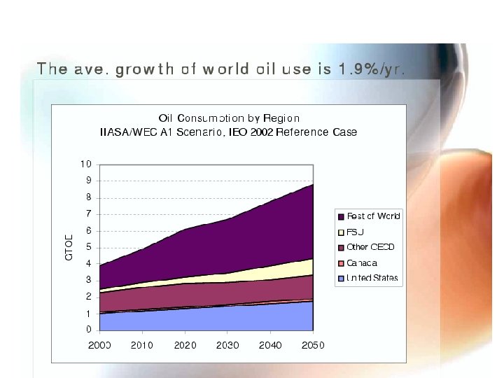 RUNNING OUT OF AND INTO OIL • David Greene et al (ORNL and U. Tennessee) have analyzed global oil depletion up to 2050 for a number of scenarios. http: //wwwcta. ornl. gov/cta/Publications_2003. html • They consider both conventional and unconventional oil resources. 1 Gtoe = 7. 33 billion barrels. • ROW conventional oil production may peak in 2010 - 2030. Including OPEC around 2030 - 2050. To meet demand, the difference will be made up from unconventional oil