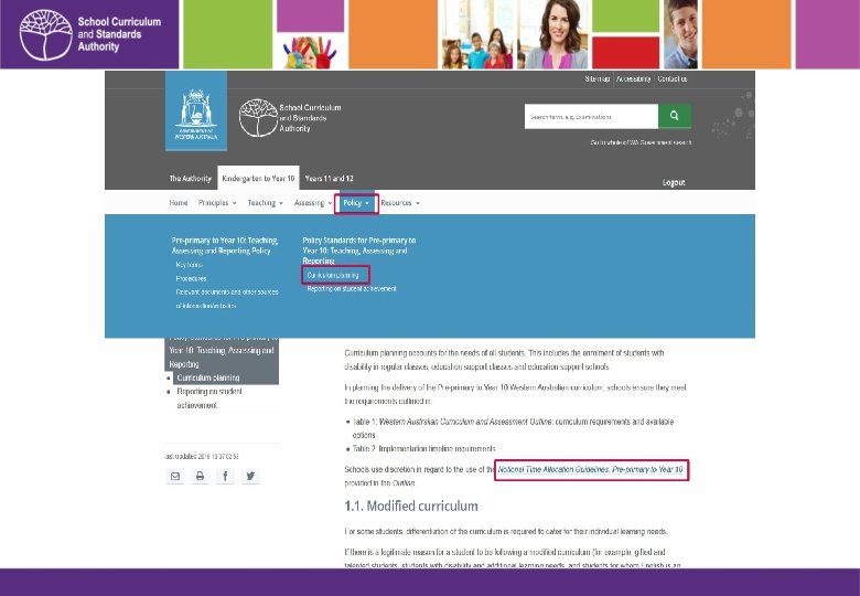 STEP 1 Establish content to be taught School Curriculum and Standards Authority Western Australian Curriculum and Assessment Outline Pre-primary to Year 10: Teaching, Assessing and Reporting Policy Teaching support materials School Year level teaching and learning programs