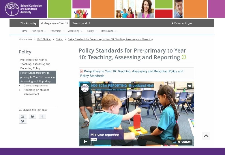 Pre-primary to Year 10: Teaching, Assessing and Reporting Policy 5. 1 Curriculum Schools will implement the Pre-primary to Year 10 Western Australian Curriculum in accordance with: • the Policy Standards for Pre-primary to Year 10: Teaching, Assessing and Reporting • the Principles of Teaching, Learning and Assessment detailed within the Outline.