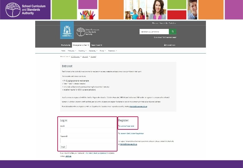 An extranet login is required to access materials.