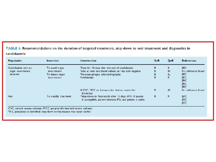 ESCMID 2012. Recommendations on Targeted Treatment of Candidemia and Invasive Candidiasis - Reasons for [So. R=A, Qo. E=I ] with Micafungin: Broader spectrum Resistance rare Biofilm activity Fungicidal Safety profile Less drug-drug interactions Superior to fluconazole in one RCT Consider local epidemiology Cornely OA , Bassetti M, Calandra T et al. Clin Microb Infect 2012; DOI: 10. 1111/1469 -0691. 12039
