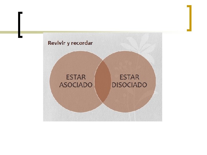 Posiciones perceptivas n FLEXIBILIDAD MENTAL n DOBLE DESENSIBILIZACION – TOMAR DISTANCIA n EXPLICACION DEL EJERCICIO n OBJETIVO DE ESTA EXPERIENCIA ¡ COMPRENDER LA REALIDAD DESDE UN PUNTO DE VISTA MÁS AMPLIO ¡ SENTIRSE EN LA PIEL DEL OTRO ¡ EQUIDISTANCIA