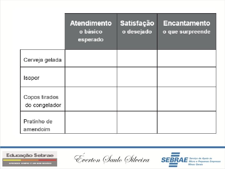 O CASO DA CERVEJA Atividade 4 • Ler o texto e marcar com um X no quadro da atividade (Atendimento – Satisfação – Encantamento) • Obs. : Não existe resposta certa ou errada. Página 43