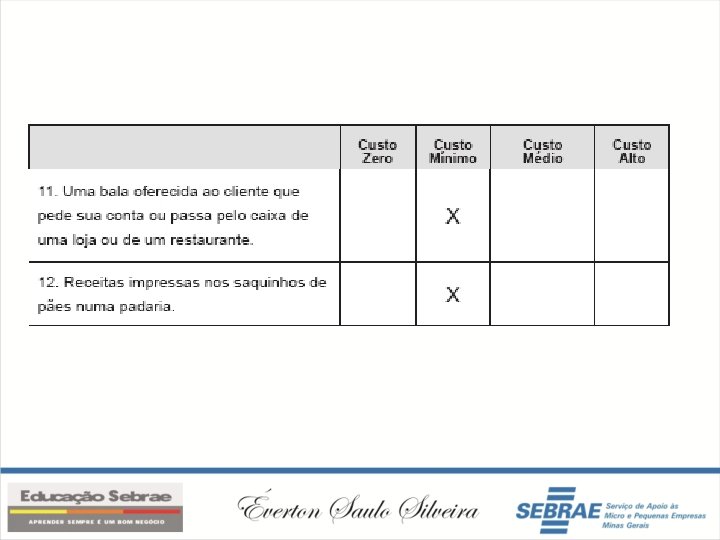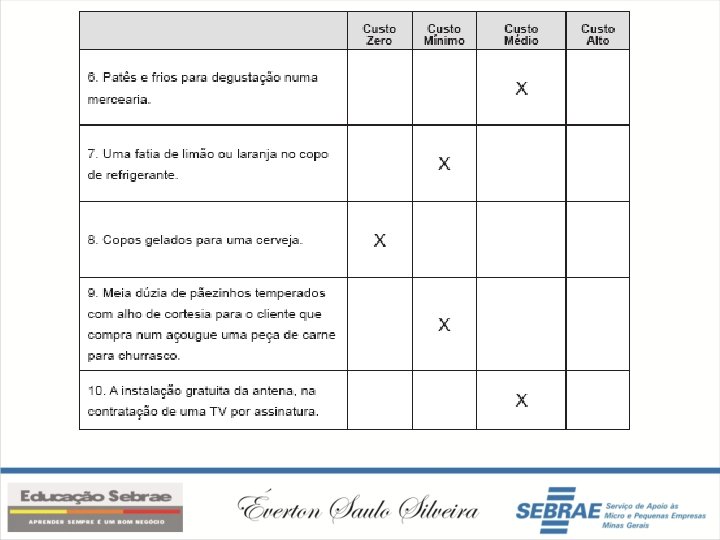 Everton Saulo Silveira - Administração – UFSJ - Mestrando em Gestão de Empresas - MBA – Gestão de Negócios e Marketing - Master Practitioner em Programação Neurolingüística - Trainer em Jogos de Empresas - Membro do Rede Emprende. Sur - Consultor de Marketing do Sebrae MG