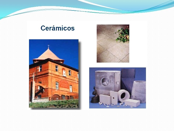 CERÁMICOS, VIDRIOS Y VIDRIOCERÁMICOS El ladrillo, el vidrio, la porcelana, etc. � poseen baja conductividad eléctrica y térmica � se emplean con frecuencia para aislar � sus propiedades mecánicas son de gran variedad, puesto que ya existen cerámicos para soportar cargas