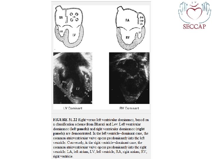 DEFEITO DO SEPTO ATRIOVENTRICULAR Epidemiologia ü Sindrome de Down: 40% têm cardiopatias e 40% destas são DSAV (geralmente forma completa) ü Freqüente nos isomerismos, principalmente no direito (forma completa) ü Síndrome de Di. George e de Ellis–van Creveld (forma parcial) Moss and Adams' Heart Disease in Infants, Children, and Adolescents
