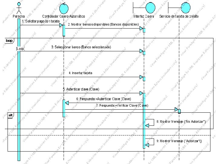 Diagramas de secuencia Se pueden representar estructuras de control: • LAZO: Un conjunto de mensajes que se repiten. • ALTERNATIVA: Caminos alternativos en la ejecución de los mensajes.