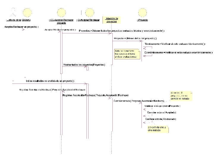 Diagrama de secuencia Ejemplo Jefe de obra Económico Aprobar/rechazar proyecto Evaluar un proyecto económicamente Evaluar un proyecto técnicamente