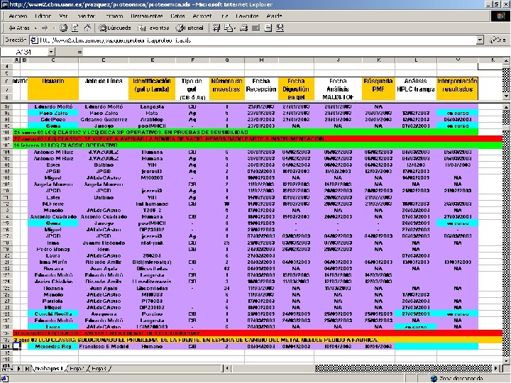 Personal del Servicio de Proteómica • Rosana Rogado: – • Laboral contratado temporal (CSIC), Ayudante de Investigación y Laboratorio Alberto Jorge: – • Laboral fijo (CSIC), Técnico de Investigación y Laboratorio Yolanda Núñez: – • Funcionaria. Técnico Especialista de Grado Medio Anabel Marina: – Laboral interino (CSIC), Titulado Técnico nivel 2