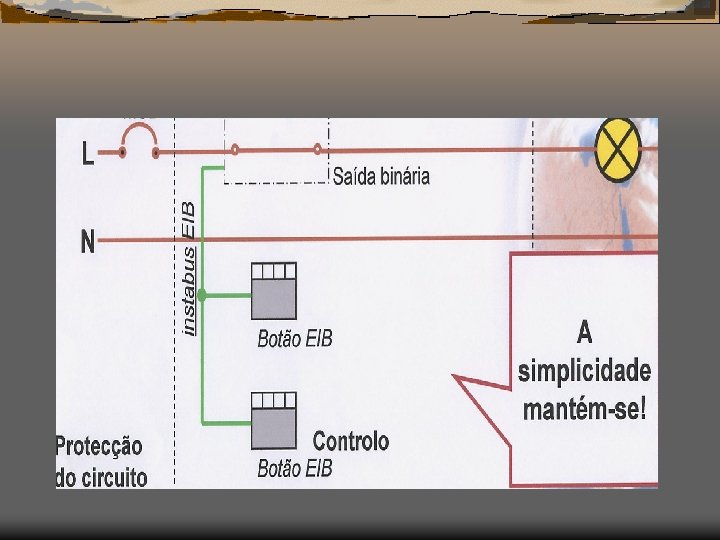 Quadro Eléctrico Domótica No quadro de automação, são efectuadas a maioria das ligações de todos os periféricos do sistema. Assim, todos os dispositivos que liguem aos módulos de senso O EIB é portanto um sistema para: I. -iluminação; II. -climatização; III. -controlo de estores; IV. -actuadores; V. -controlo remoto, etc. A alimentação dos receptores é feita directamente a partir dos módulos de saída, eliminando assim um grande número de caixas de derivação, que consomem bastante tempo de mão – de – obra.