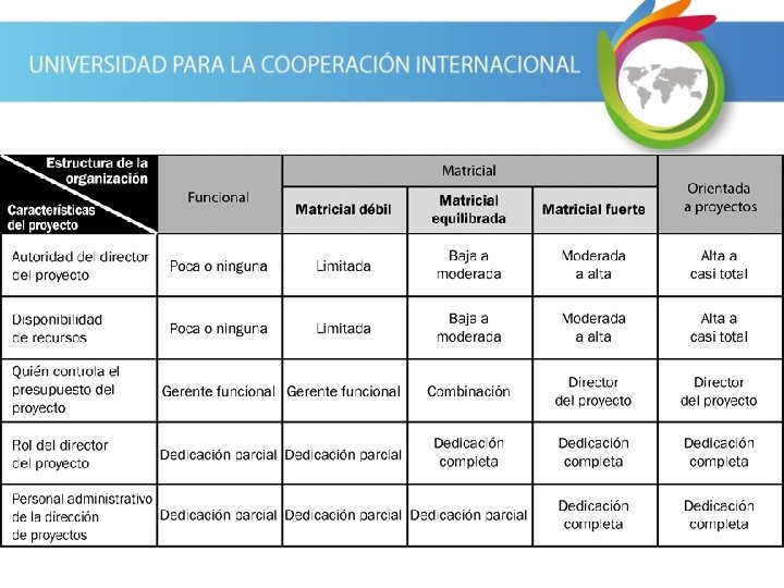 Matricial Ajustada • Se refiere a la ubicación en el mismo aposento de las oficinas para el equipo de proyecto. No tiene que ver nada con estructuras de la organización.