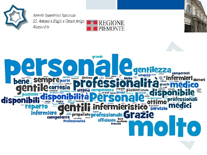 Nel 40, 33% degli elogi prevale l’apprezzamento della capacità RELAZIONE del personale Nel 35, 88% degli elogi emerge il riconoscimento di CAPACITA’ TECNICO PROFESSIONALI