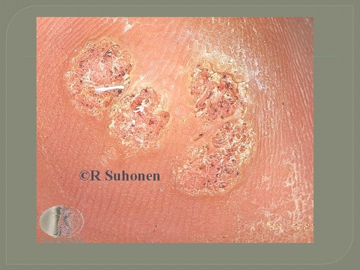 5. Verruca plantaris Located at pressure points. Painful. Single or multiple(mosiac). Leveled with sole skin. D. D corn, callosities.