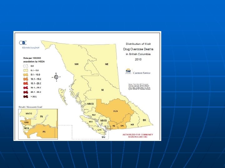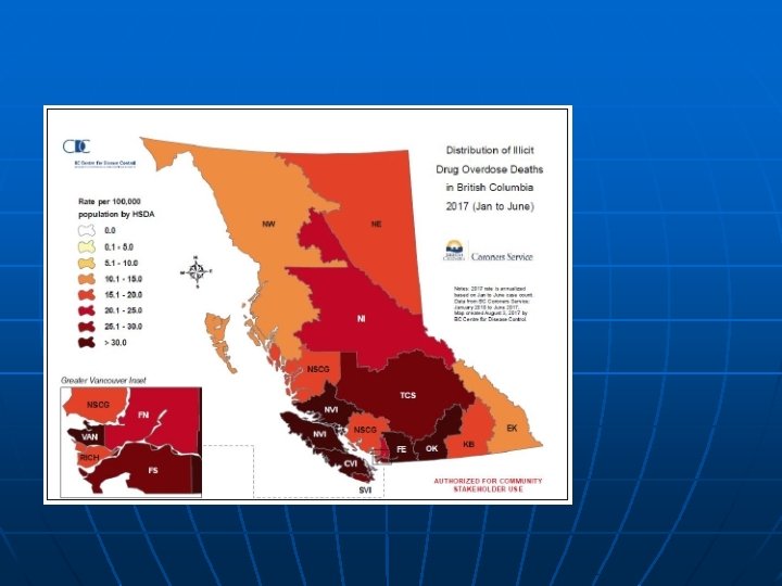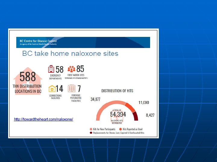 What BC is doing about it n Improve monitoring and Surveillance • Overdose Cohort: to identify who is at risk, where to target, and assess interventions • n Preventing overdose before it happens Immediate response to overdose • • Recognize and respond to OD Improve access to naloxone • Drug use in supervised observed settings