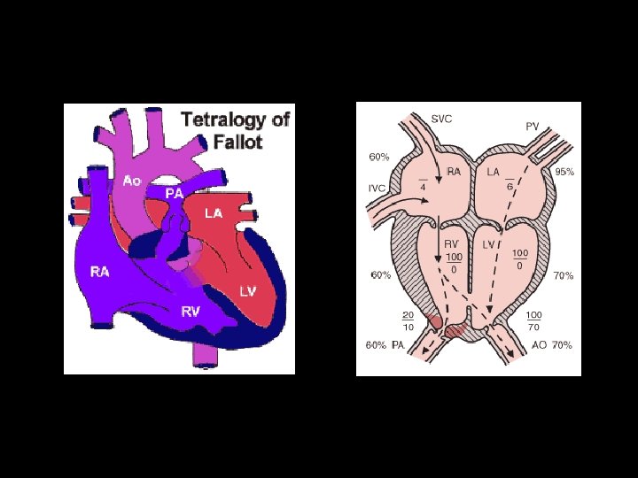 CYANOTIC SPELLS -physiology Effect of hyperventilation E f f Normal -- Sa. O 2 , Pa. O 2 & p. H e Pa. CO 2 c TOF t -consistent fall in Sa. O 2 Hyperventilation R L shunt venous return to RV PCO 2 , Pa. O 2, p. H, Sao 2