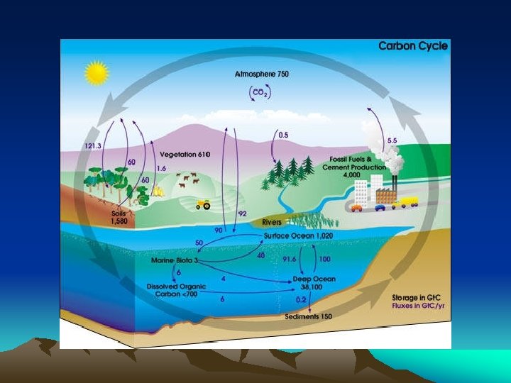 The Carbon Cycle Carbon is a key ingredient of living tissue. Biological processes, such as photosynthesis, respiration, and decomposition, take up and release carbon and oxygen. Geochemical processes, such as erosion and volcanic activity, release carbon dioxide to the atmosphere and oceans.
