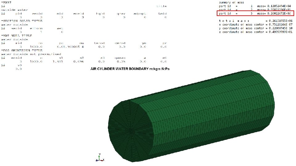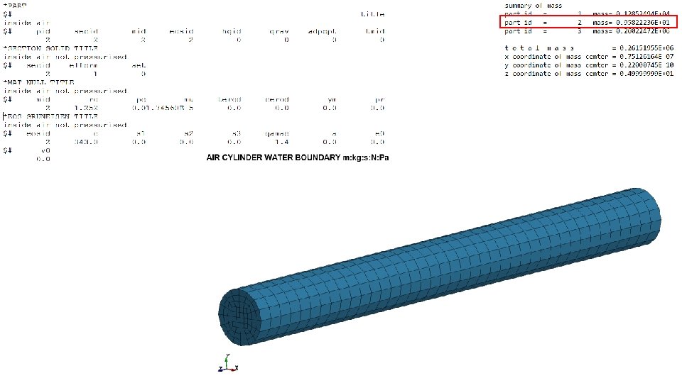 SCENARIO CWA Mesh length (z direction) 0. 25 Cylinder diameter(m) Cylinder length(m) Cylinder thickness(m) End Plate thickness(m) 1 10 0. 005 Cylinder Air Water