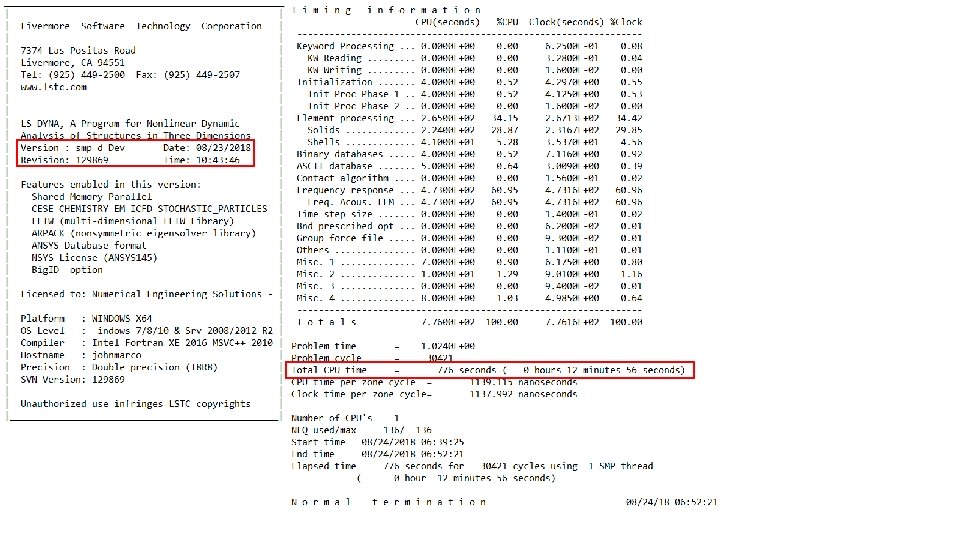 Runt time 1. 024 s STEP 1 TIME DOMAIN ANALYSIS Step 1 Time Domain Analysis Step 2 Frequency Domain Analysis Maximum solid element length 0. 25 m (AXIAL) Maximum solid element length 0. 09 m (RADIAL) V= d/t or c=l*f c: speed sound l: wavelength f: frequency WATER c=1500 m/s want f=500 hz hence l=1500/500 l=3 m AIR c=340 m/s hence l=340/500 l=0. 68 m AIR element size <(1/6)*0. 68 = 0. 113 m (maximum length must not be greater) Largest Element size = 0. 25 m > 0. 113 m STEP 2 FREQUENCY DOMAIN ANALYSIS