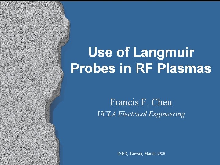 Other important probes not covered here • Double probes (for ungrounded plasmas) • Hot probes (to get space potential) • Insulated probes (to overcome probe coating) • Surface plasma wave probes (to overcome coating) Conclusion There are many difficulties in using this simple diagnostic in partially ionized RF plasmas, especially magnetized ones, but the problems are understood and can be overcome. One has to be careful in analyzing probe curves! UCLA