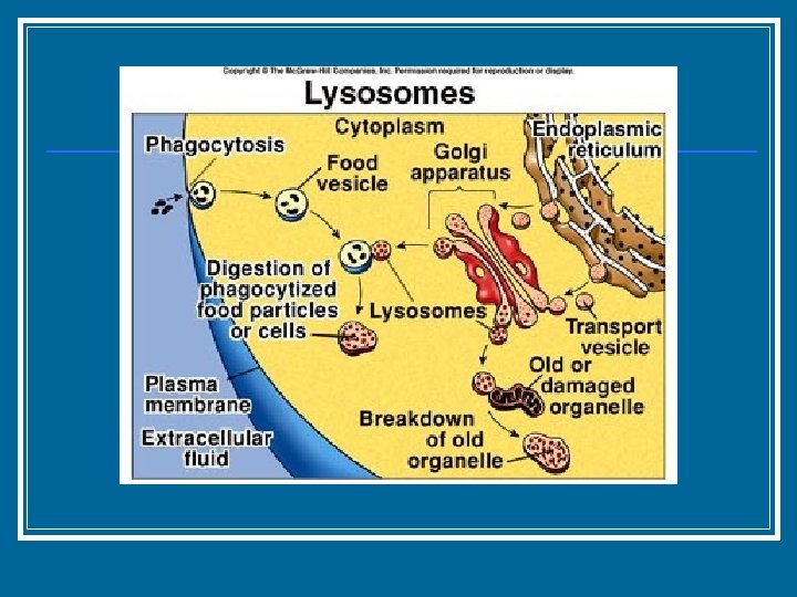 Lysosome n Membranous sac of digestive enzymes n n “Trash dumpster” of the cell n n n Made by Golgi Apparatus Contains digestive enzymes Gets rid of large molecules, wastes, and malfunctioning organelles Tay-Sachs occurs due to the fact that the lysosome isn’t digesting lipids, so fatty substance accumulates on nerve cells