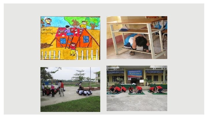 MỤC ĐÍCH Sau khi tham gia các hoạt động này, học sinh có thể • Biết đánh giá rủi ro, khả năng, tình trạng dễ bị tổn thương nơi mình đang sống thông qua công cụ vẽ sơ đồ và thông tin lịch sử • Thực hành một số hoạt động ứng phó trong thiên tai: làm túi dụng cụ khẩn cấp, luyện tập thoát hiểm, mặc áo phao. . .