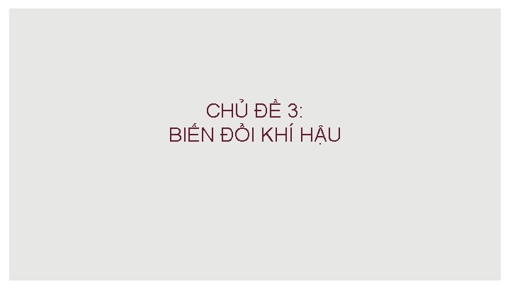 BIẾN ĐỔI KHÍ HẬU • Thuật ngữ “biến đổi khí hậu” dùng để chỉ những thay đổi của khí hậu vượt ra khỏi trạng thái trung bình đã được duy trì trong một khoảng thời gian dài, có thể là ấm hơn hoặc lạnh hơn. • BĐKH có thể do các quá trình tự nhiên và/hoặc do hoạt động của con người.