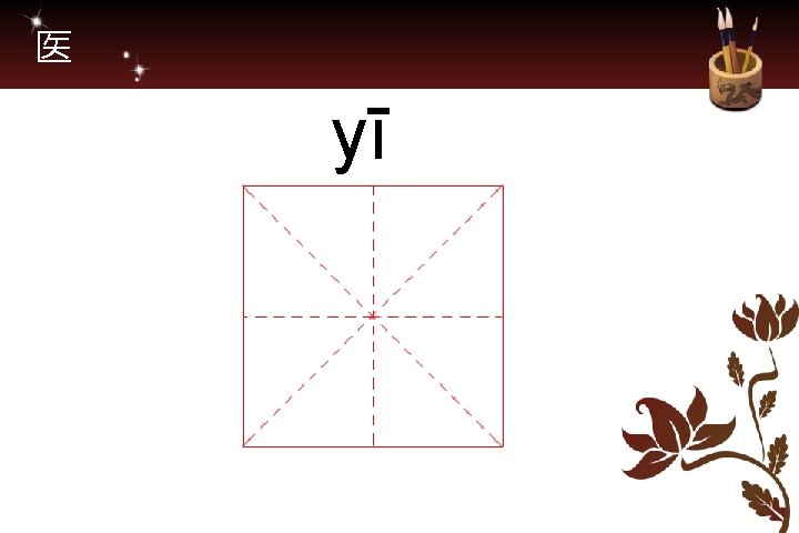 矢 shǐ 医 yī Es una caja匚 con flecha 矢 abierta por un lado. Representa la caja con los bisturís.