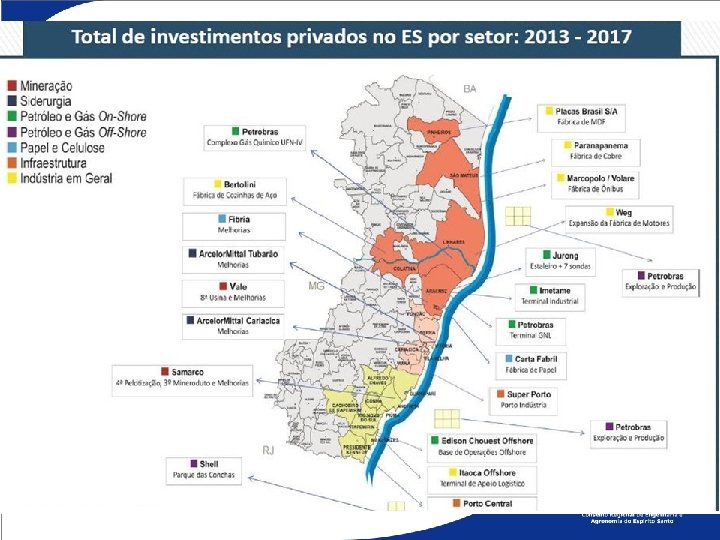 ESPIRITO SANTO: Investimentos Anunciados (públicos e privados) 2012 a 2017 = R$ 125, 14 bilhões Fonte: Governo do ES/IJSN/