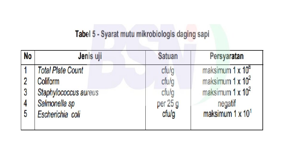 CIRI-CIRI DAGING BERMUTU BAGUS 1. WARNA 2. TEKSTUR 3. BAU : merah muda : elastis : segar dan tidak berbau busuk 4. LENDIR : tidak ada 5. PENAMPAKAN: tidak kering dan banyak cairan 6. LEMAK : tidak terlalu banyak