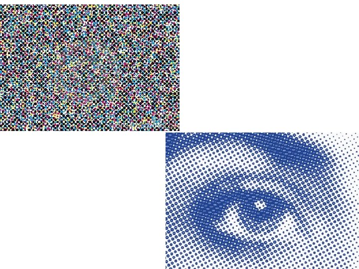• Atspaudui būdinga kontrastingas koloritas, spalvų dėmės, rastras (vaizdas iš taškų).
