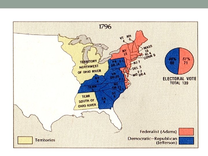 Response to Acts • Jefferson and Madison fought Adams on these issues • Kentucky and Virginia Resolutions: Written by Jefferson and Madison in response to Acts • States’ rights (theory that states have rights over the national government) • Nullification (state rejection of national laws)