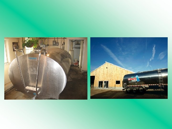 The Process • Milk travels through pipelines to a large stainless steel bulk tank after passing through paper filters. • Here, the milk is cooled using refrigeration units and agitators. • Once the milk is cooled, it is picked up by large tanker trucks which ship the milk to a dairy processing plant for pasteurization, processing, and packaging.