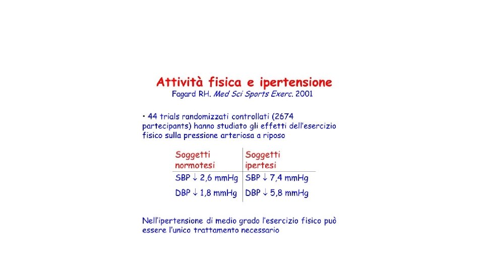 Dal 1983 OMS consiglia approccio non farmacologico al trattamento dell’ipertensione Dal 1986 viene consigliato un programma strutturato di attività aerobica In seguito siè aggiunto anche l’allenamento di resistenza