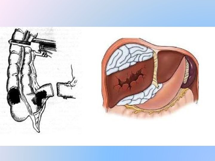 Steps in damage control Surgery �Bleeding raw surfaces , like that of the liver are packed with laparotomy pads �Small enteric injuries are closed with staples �Large ones are stapled on both sides with the GIA stapling device and damaged segment removed