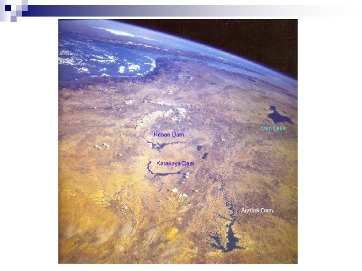 ENVIRONMENTAL IMPACTS of RESERVOIRS n n Loss of land Habitat Destruction : n n n n n The area that is covered by the reservoir is destroyed, killing whatever habitat existed there beforehand. Loss of archeological and histrorical places Loss of mineral deposits Loss of special geological formations Aesthetic view reduction Sedimentation Change in river flow regime and flood effects Reservoir induced seismicity Change in climate and plant species
