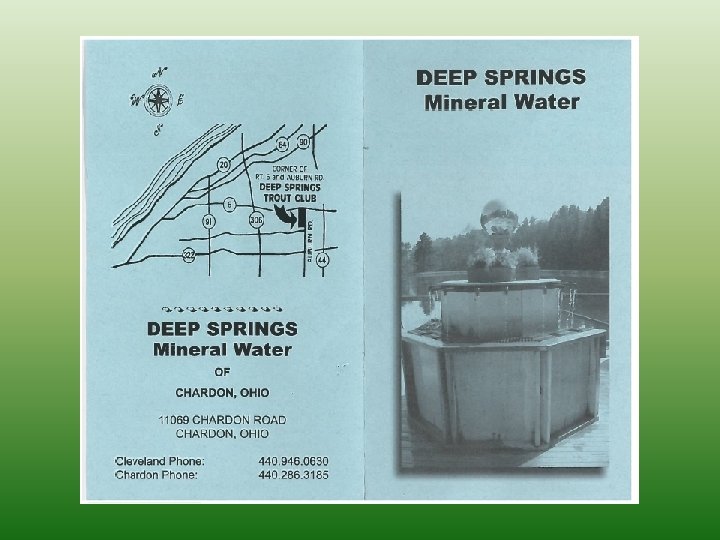 First: Stop drinking tap water �Bottled water fluoride? �Deep Springs Trout Club water from Chardon, OH. Deep Springs Trout Club Fluoride-free , 30 cents a gallon. �White House water (from Elyria, OH) - artesian spring White House water ; low organic fluoride content (0. 46 ppm) (Source: water test results 2015)