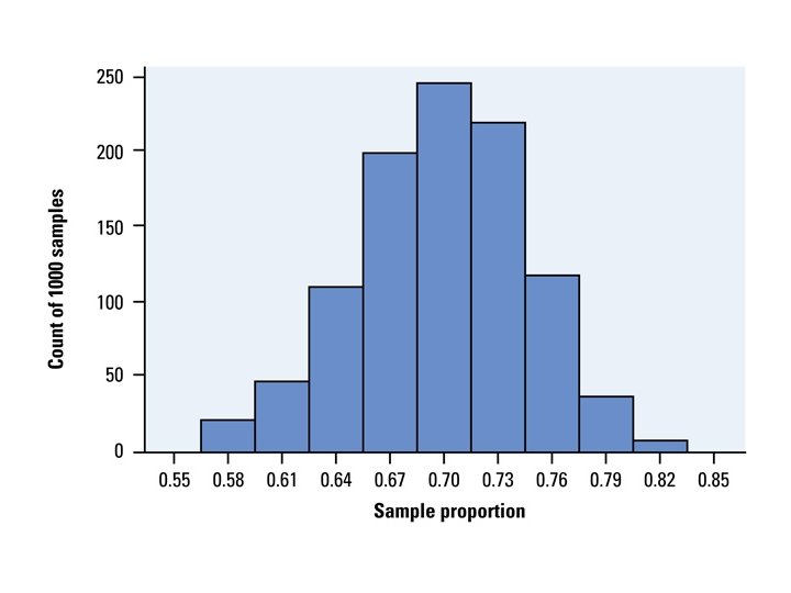 Compare • parameter – mean: μ – standard deviation: σ – proportion: p • statistic – mean: x-bar – standard deviation: s – proportion: (p-hat) • Sometimes we call the parameters “true”; true statistics “sample”; mean, true proportion, sample mean, sample etc. proportion, etc.