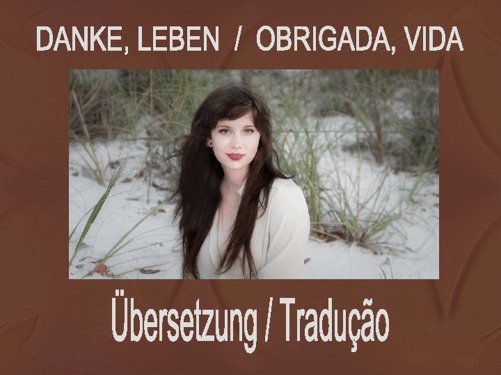 Danke, Leben. . . für das Lied in meinem Herzen, das Lächeln auf meinen Lippen und die Freude in meinen Händen. Obrigada, vida. . . pela canção em meu coração, pelo sorriso em meus lábios e pela alegria em minhas mãos.