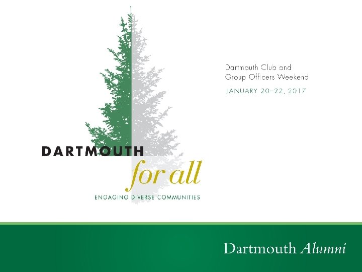 Dartmouth’s 250 th Celebration Big GREEN Celebration The Big GREEN Challenge Details Alumni Relations will award funding for several events over the course of the 250 th Celebration. Juried process where event ideas will be reviewed against several categories: ü Most innovative ü Most collaborative ü Most appealing to a diverse audience To be a part of the official 250 th celebration, submit your event proposal for review by December, 2017. Several winners will be selected announced by March, 2018.