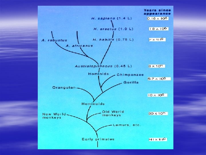 Earliest Man on Record § Fossils! – Skull fossils found allows us to setup a pretty distinctive timeline. – Based on what other fossils we find with them. § Early humans referred to as HOMINIDS § Most early fossils date back to 7, 000 years ago – Most were found in East Africa. Why? § It was tropical/subtropical, which made it easier for them to live § Dried out over time, made fossilization easy