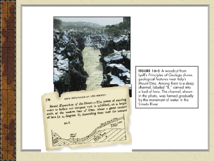 Lyell’s Principles of Geology Believed that the geological processes we see today must be the same ones that shaped Earth millions of years ago There needed to be enough time in Earth’s history for these changes (like a river carving out a canyon) to take place He agreed with Hutton that the earth was much older than a thousand years