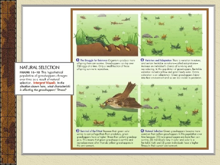 Natural Selection is the process by which organisms with variations most suited to their local environment survive and leave more offspring Natural Selection occurs in any situation in which more individuals are born than can survive